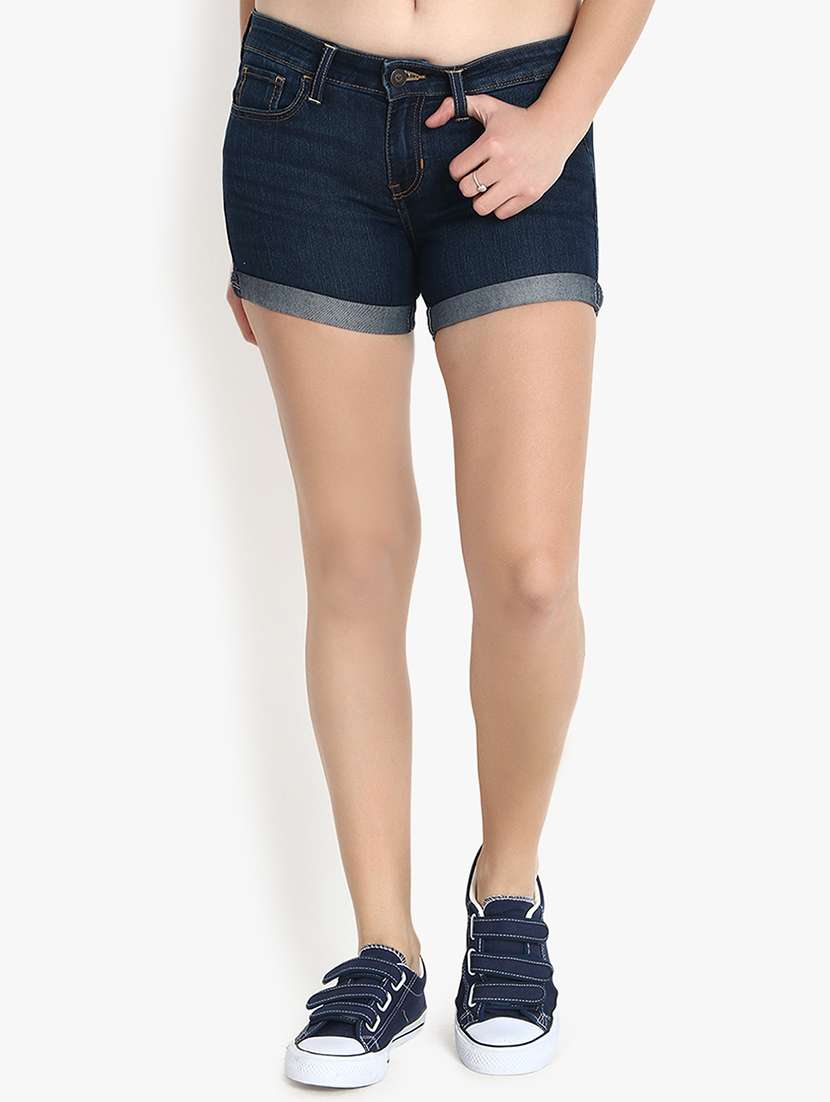 turn up hem high rise denim shorts