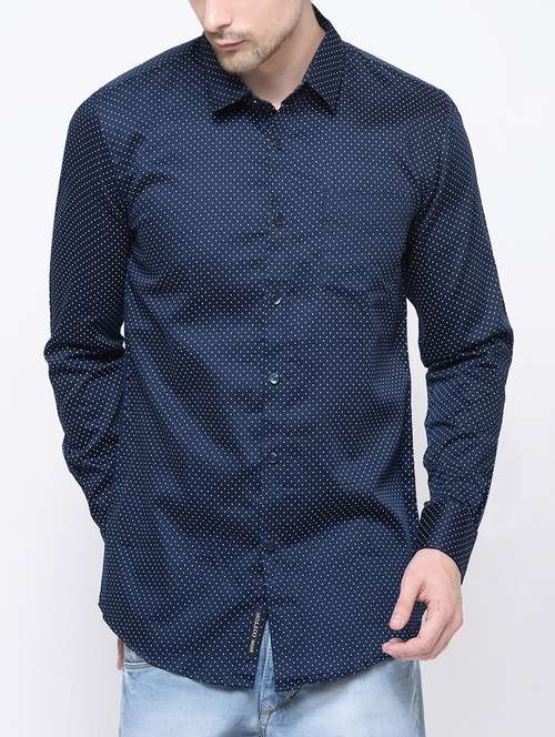 - » navy blue cotton casual shirt