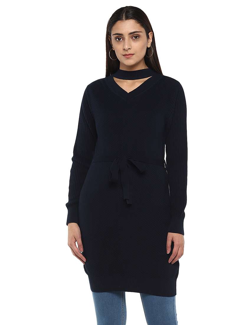 - » tie front choker neck solid tunic