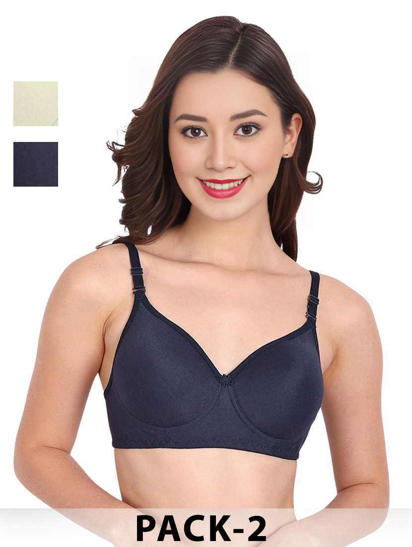 Liigne Women Everyday Non Padded Bra (Pack Of 2) - Made of Pure Cotton Full Coverage Non Wired Pushup Soft Cup for T-Shirt Saree Dress Sports Garment for Daily Use Everyday