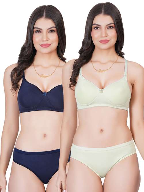 Liigne Women Everyday Padded Bra Panty Set (Pack Of 2) - This Lingerie Set Made of Pure Cotton