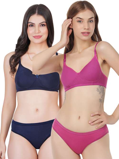 Liigne Women Everyday Padded Bra Panty Set (Pack Of 2) - This Lingerie Set Made of Pure Cotton
