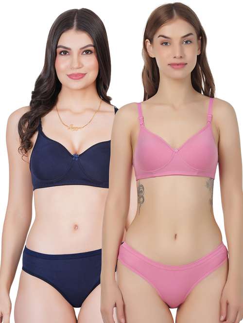 Liigne Women Everyday Padded Bra Panty Set (Pack Of 2) - This Lingerie Set Made of Pure Cotton