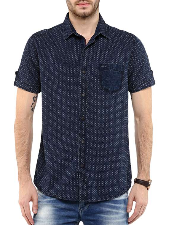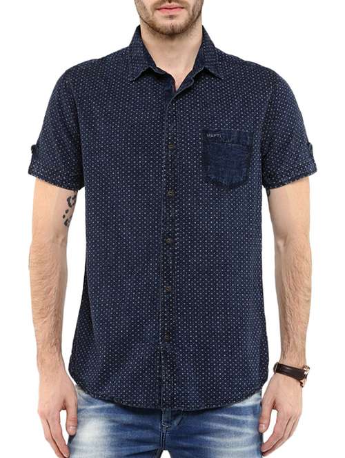 - » navy blue cotton casual shirt