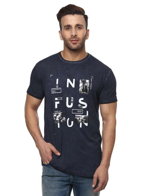 - » navy blue cotton chest print t-shirt