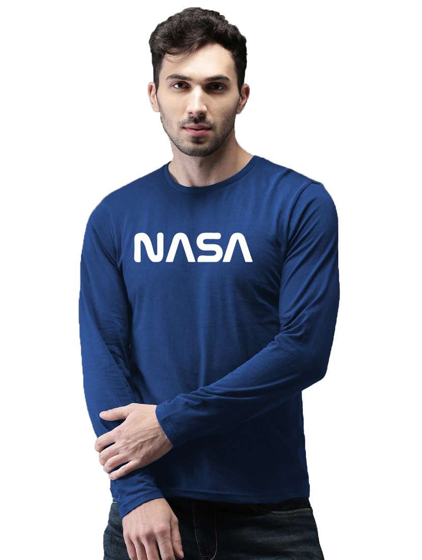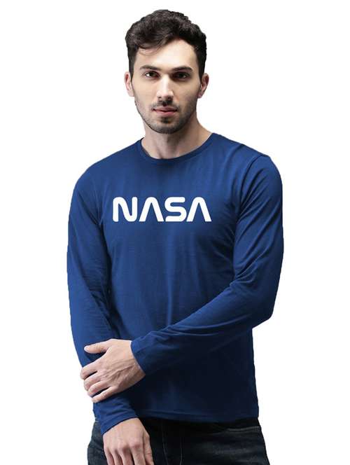 - » navy blue cotton front print tshirt