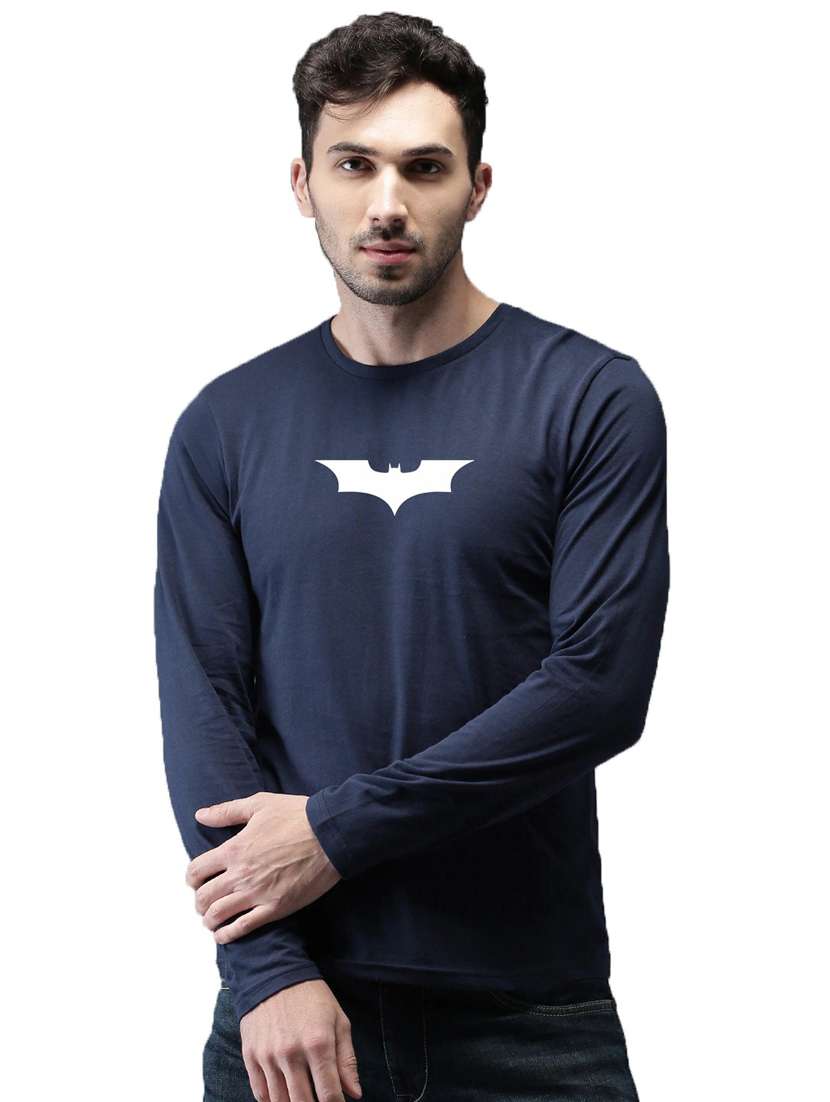 - » navy blue cotton front print tshirt