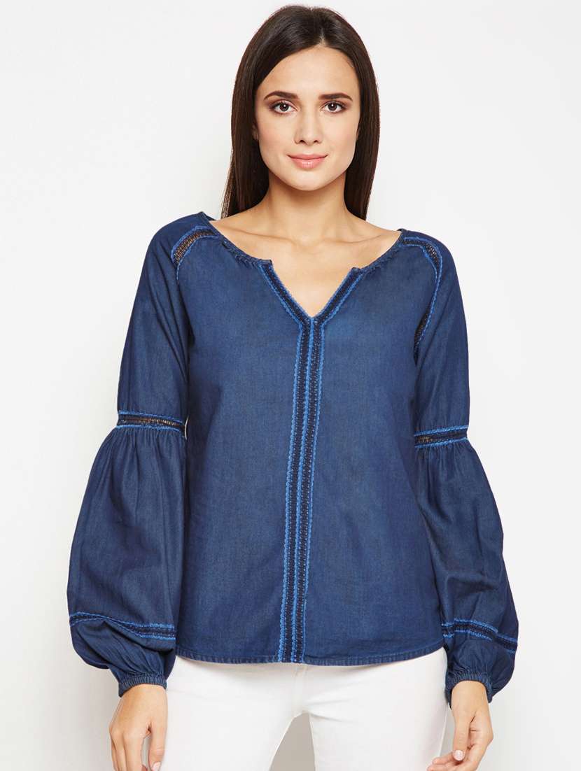 - » notch neck bishop sleeved top