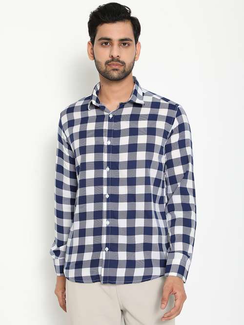 - » navy blue checkered casual shirt