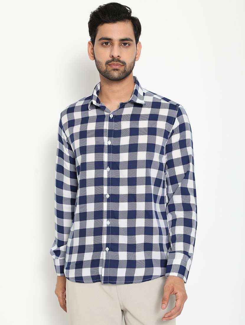 navy blue checkered casual shirt