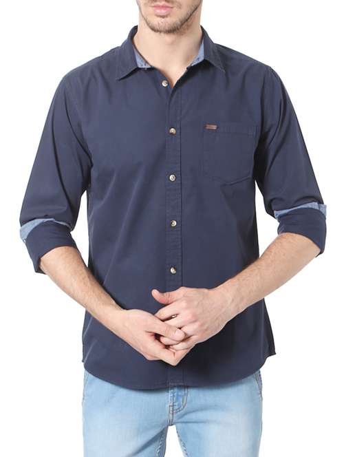 - » navy blue cotton casual shirt