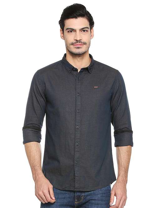 navy blue cotton casual shirt