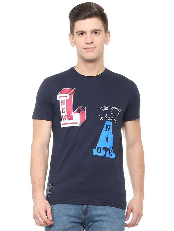 - » navy blue cotton chest print t-shirt