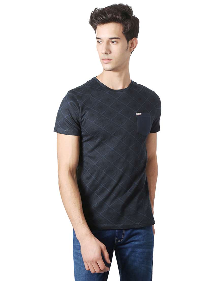 navy blue all over print t-shirt