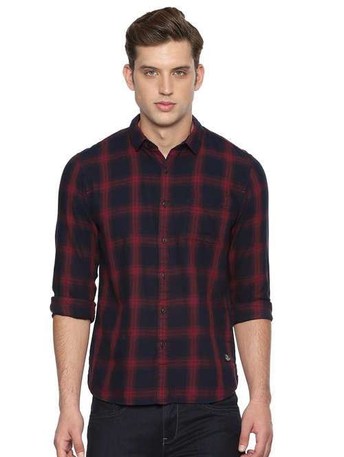 - » navy blue checkered casual shirt