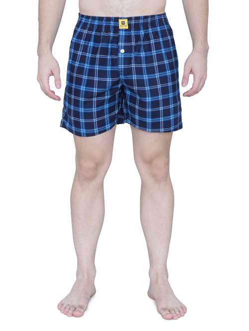 men blue regular fit cotton checkered boxers
