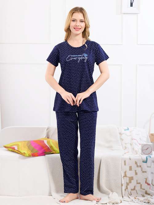 - After a long tiring day, slip into something homely, shop for the all-new collection of nightwear sets for ladies in S sizes and gorgeous blue designs and colors.