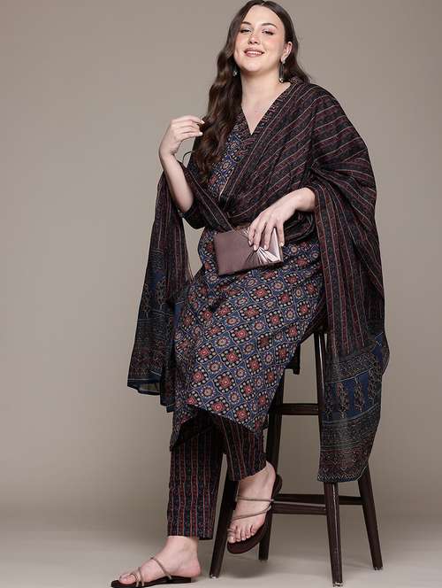 navy blue cotton suit set