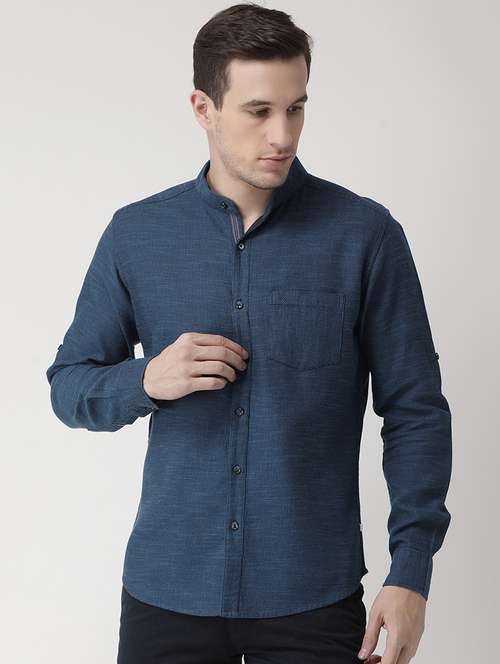 - » navy blue cotton casual shirt