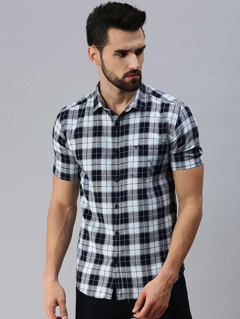 - » navy blue checkered casual shirt