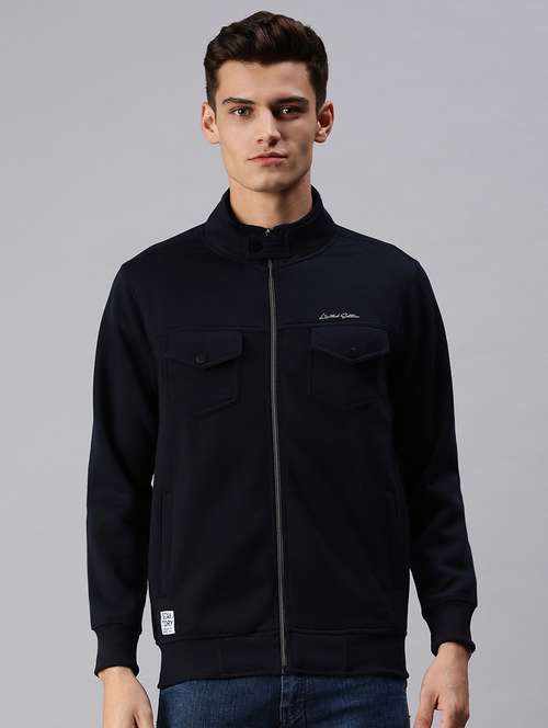 navy blue solid casual jacket