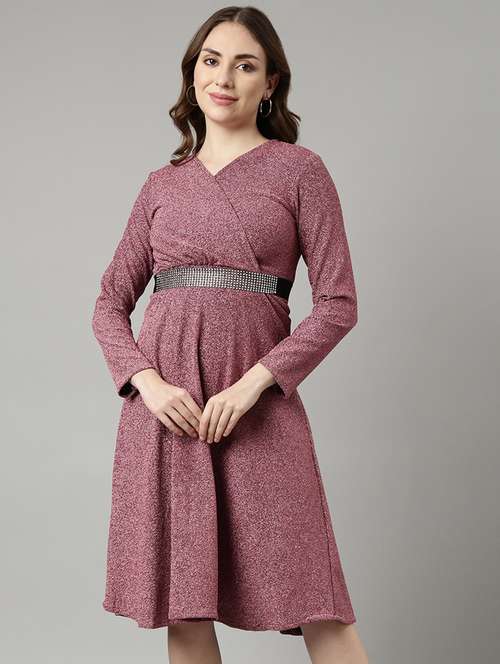- Dress up in a soothing pattern and don this dress made of cotton material.