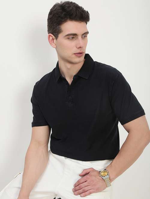 - » men navy blue short sleeve solid slim fit polo t-shirt