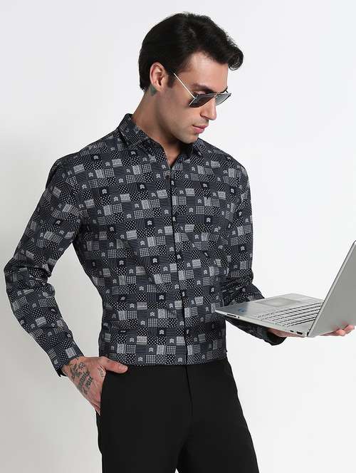 - » men printed long sleeve slim fit formal shirt