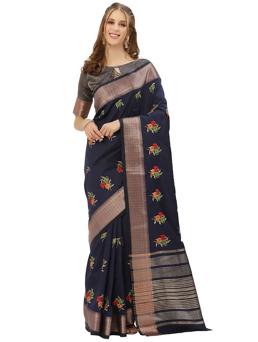 - » navy blue solid with work bordered saree with blouse