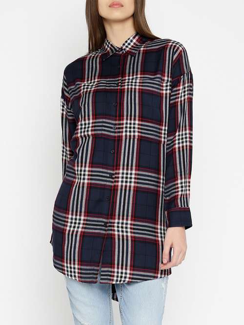- » navy blue checkered cotton regular shirt