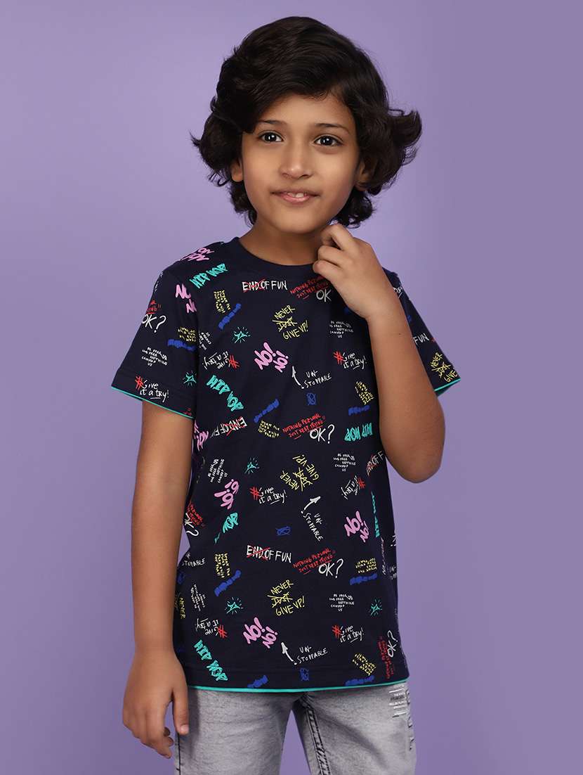 - » navy blue cotton printed t-shirt