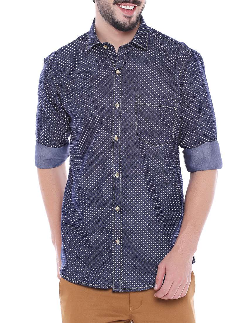 - » navy blue cotton casual shirt
