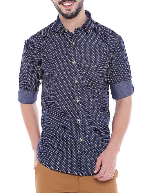 navy blue cotton casual shirt