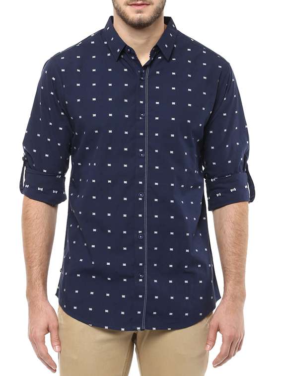 - » navy blue cotton casual shirt