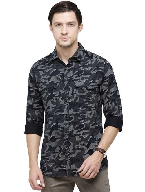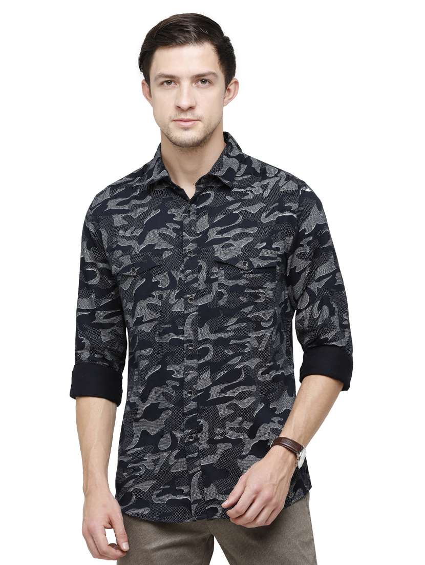 navy blue camouflage casual shirt