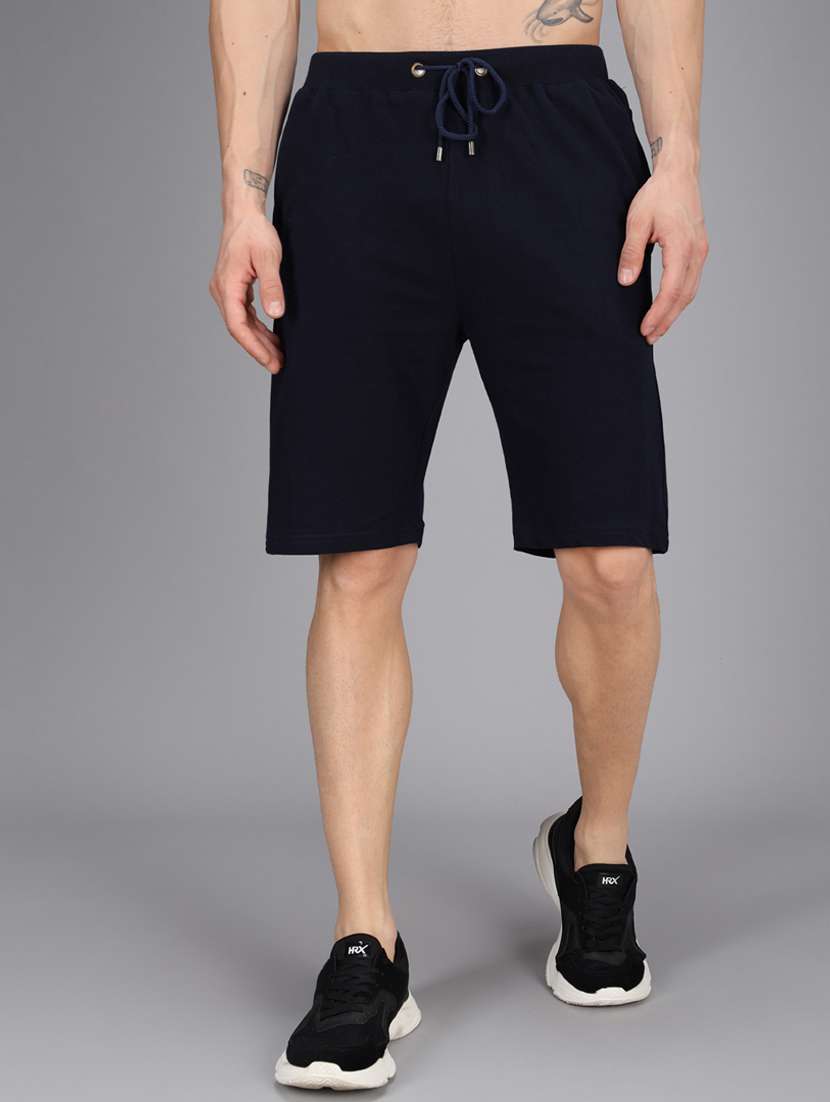 Navy Blue Tremendous Short Crafted from Standard Quality 100% French Terry Cotton Fabric. Gives amaizng Solid or Plain design with Pockets. Elasticated Waistband with Drawstring for More Comfort. Rapid Dry, Odour Free.