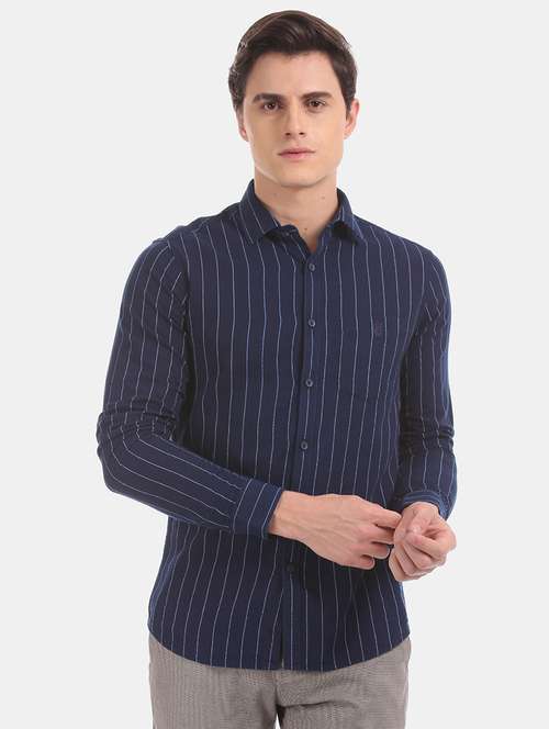 - » navy blue striped casual shirt