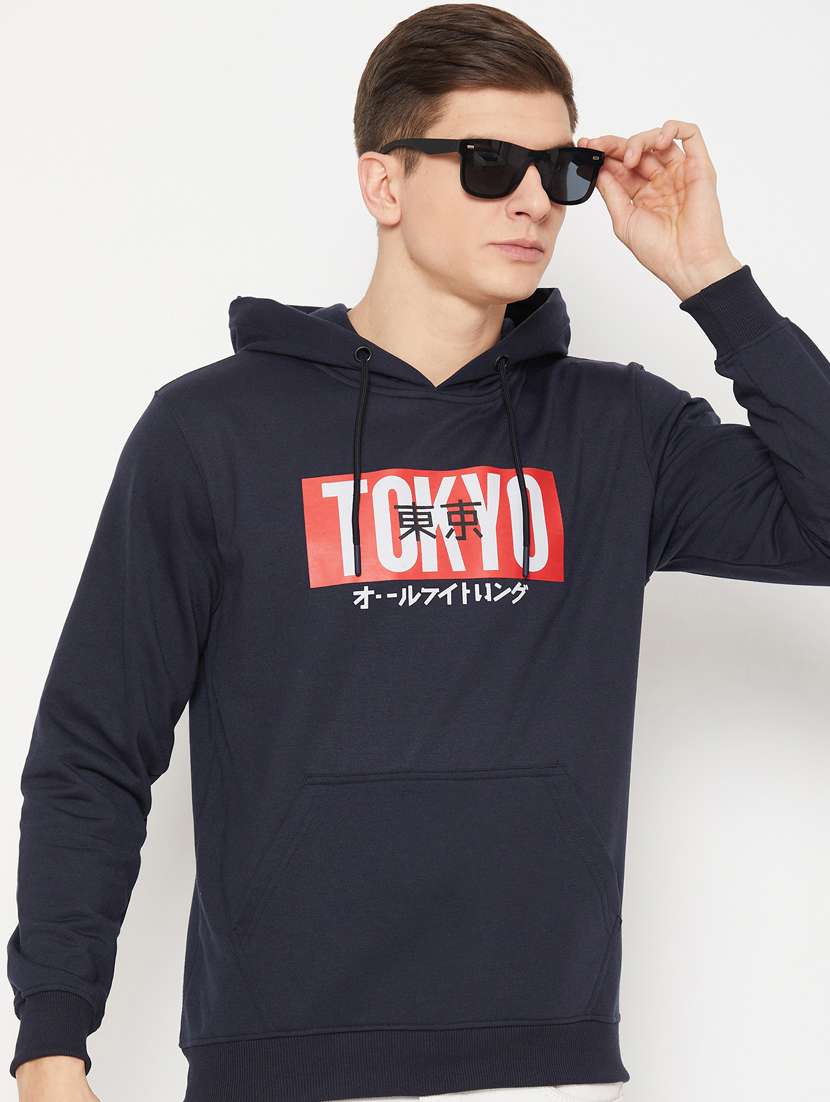 - » navy blue chest print regular sweatshirt