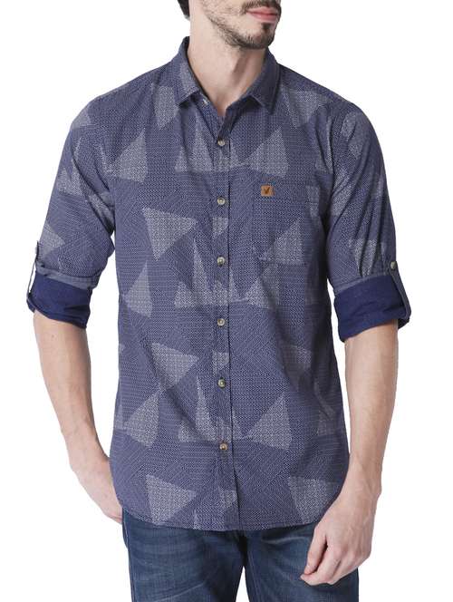 navy blue cotton casual shirt - 14069789 - Very Small Image - 1