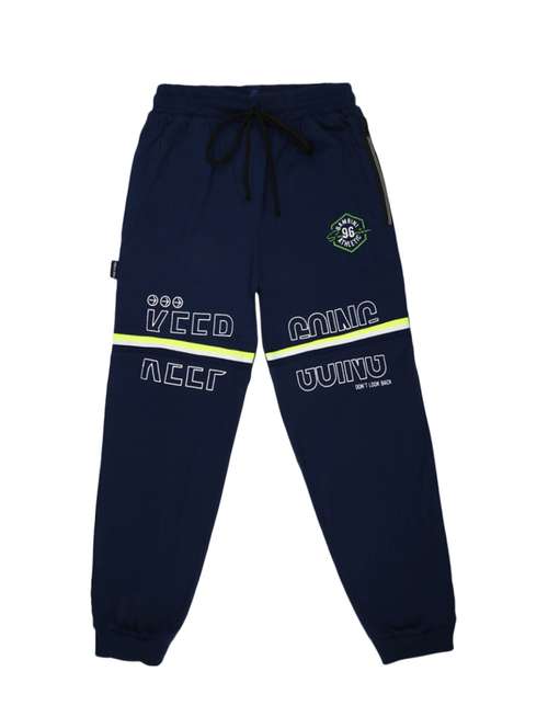 navy blue printed cotton casual trouser