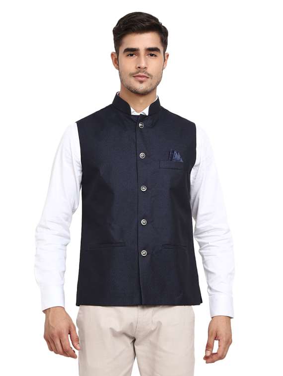 - » navy blue solid nehru jacket