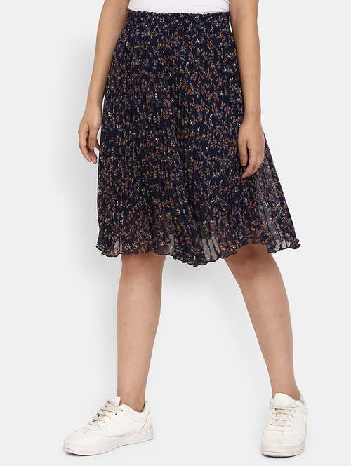 - » navy blue floral print pleated skirt