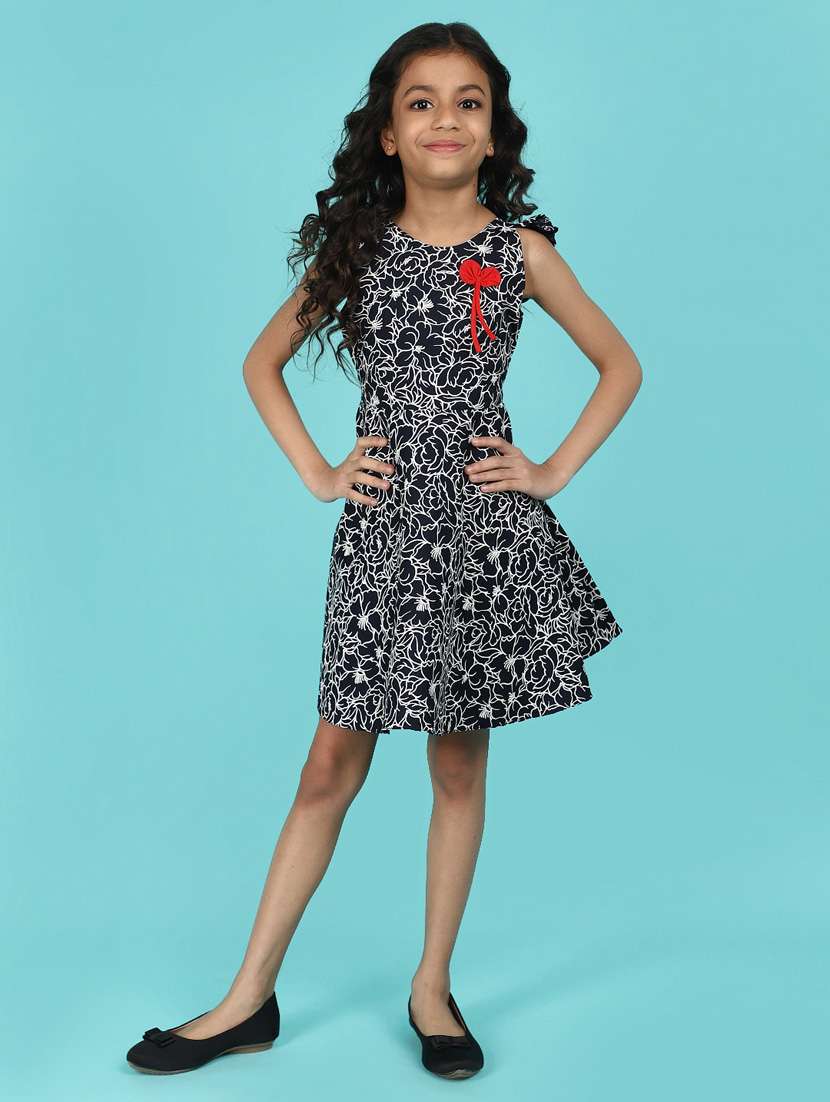 kids black printed sleeveless frock