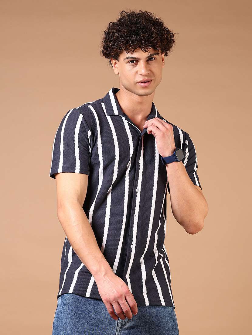 - Be a head turner by wearing this casual shirt from V-Mart and grab it in navy blue colour.