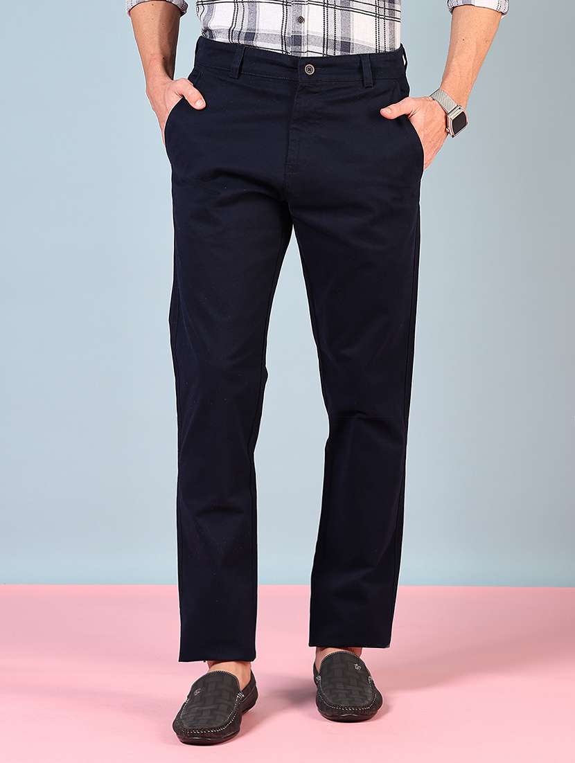 men solid mid rise casual chinos