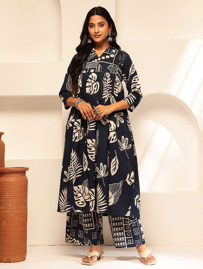 - Find gorgeous sets of ethnic wears in trending designs in navy blue colors suitable for casual wear of occasions.