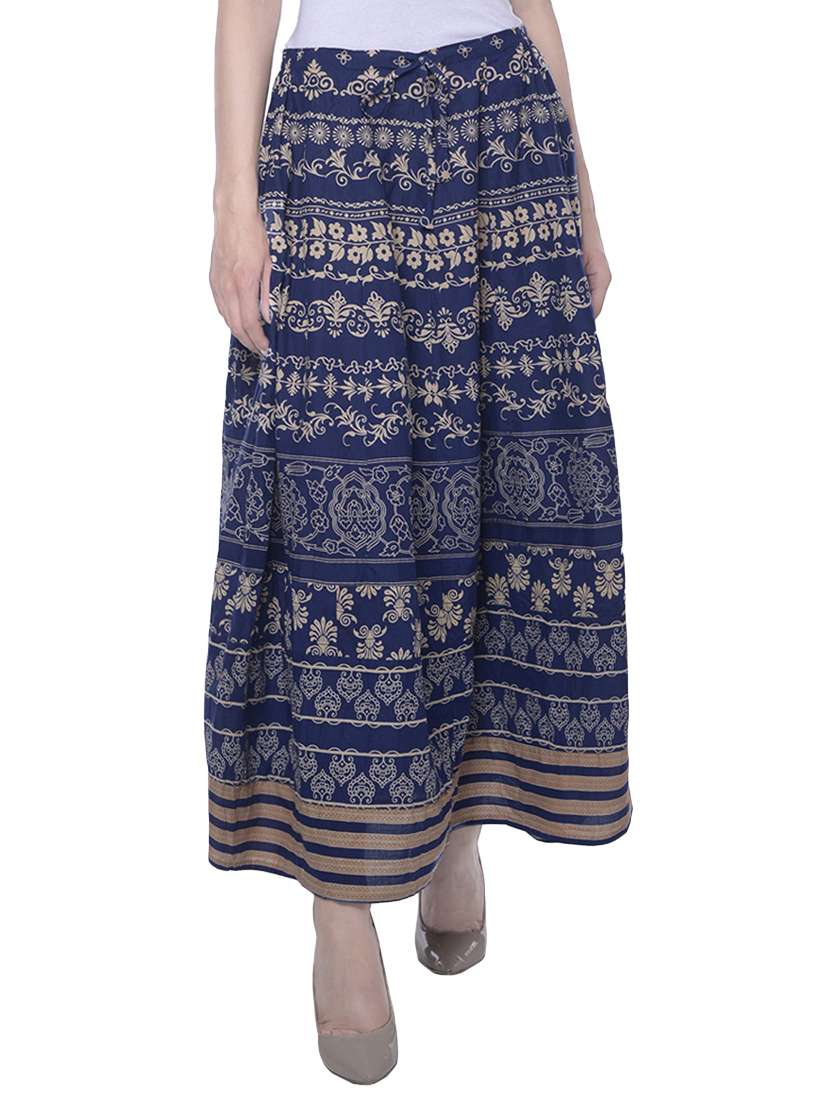 navy blue cotton flared skirt