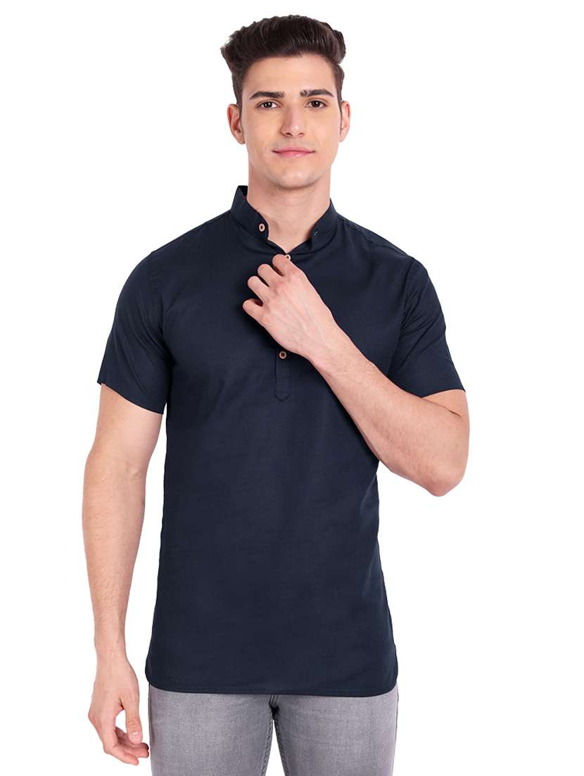 - » navy blue solid short kurta