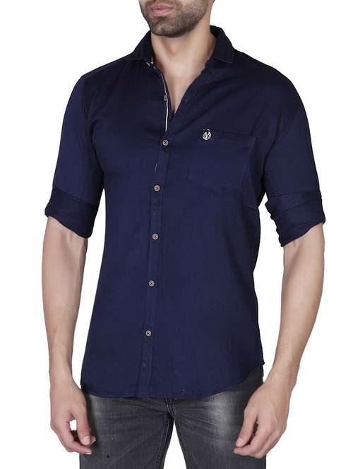 - » navy blue cotton casual shirt