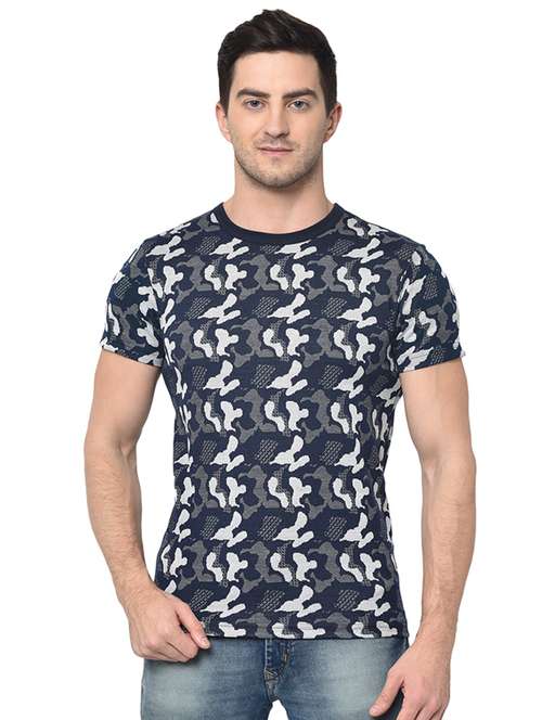 navy blue camouflage print t-shirt